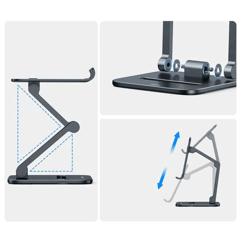 پایه باسئوس مدل BS-HP006 امکان چرخش روی پایه را فراهم کرده و با قابلیت تاشو در دو جهت، زاویه مناسب برای استفاده از دستگاه را به راحتی تنظیم میکند.