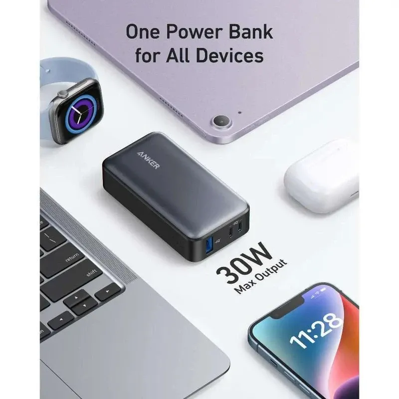 وزن مناسب آن باعث میشود که حمل و نقل این پاوربانک بهسادگی انجام شود و شما همیشه بتوانید انرژی لازم برای دستگاههای خود را در اختیار داشته باشید. ویژگی اصلی این پاوربانک، قابلیت شارژ سریع 30 واتی است که میتواند باتری آیفون شما را تا 3 برابر سریعتر از شارژر های معمولی تقویت کند. همچنین این پاوربانک قادر به ارائه 20 ساعت پخش ویدئو بیشتر برای آیفون 14 است. این پاوربانک انکر مجهز به صفحه نمایش LCD هوشمندی است که به شما امکان میدهد وضعیت باتری و زمان استفاده را به راحتی مشاهده کنید. این نمایشگر اطلاعات دقیقی در زمینه شارژ و تخلیه باتری ارائه میدهد.