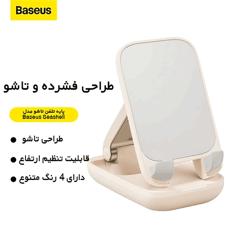 پایه نگهدارنده گوشی بیسوس مدل Seashell Series یک ابزار کاربردی و شیک برای نگهداری گوشیهای هوشمند است که برای استفاده روی سطوح صاف طراحی شده است. این پایه با ابعاد جمعوجور و وزن مناسب، قابلیت قرارگیری گوشی در حالت افقی و عمودی را فراهم میکند و گزینهای عالی برای مشاهده ویدئو، مطالعه یا برقراری تماسهای ویدیویی است. استفاده از مواد مقاوم مانند پلاستیک فشرده (ABS) و پلی کربنات (PC) دوام و ماندگاری بالای این محصول را تضمین میکند.
