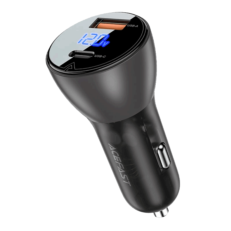جنس بدنه شارژر فندکی ایس فست B6 ازآلیاژ روی ساخته شده که دارای مقاومت خوبی است. این شارژر فندکی ابعاد جمع و جوری برابر با 73*34*34 میلی متر داشته و میتوانید همراه خود آن را به هر جایی جابهجا کنید. روی بدنه شارژر فندکی ایس فست B6 یک پورت Type-c و یک پورت USB تعبیه شده که می توانید از آن برای شارژ گوشی خود استفاده کنید. شارژر فندکی ACEFAST B6 رنگ مشکی درخشان و جذابی داشته که زیبایی خاصی به خودروی شما میبخشد. یک صفحه نشانگر دیجیتالی نیز روی بدنه این شارژر فندکی قرار گرفته است.
