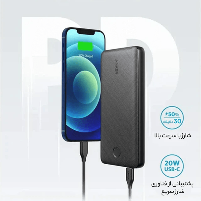شارژر همراه انکر مدل Anker PowerCore Essential ظرفیت 20000 میلی آمپر ساعت، محصولی با توان خروجی 20 وات بوده و با سرعت بالایی میتواند انواع دستگاههای دیجیتال مانند آیفون ۱۲، سری گلکسی S20 یا پیکسل ۴ و محصولات مشابه را شارژ کند. این محصول با استفاده از فناوریهای پیشرفته تولید شده و یکی از پرفروشترین محصولات موجود در بازار است.